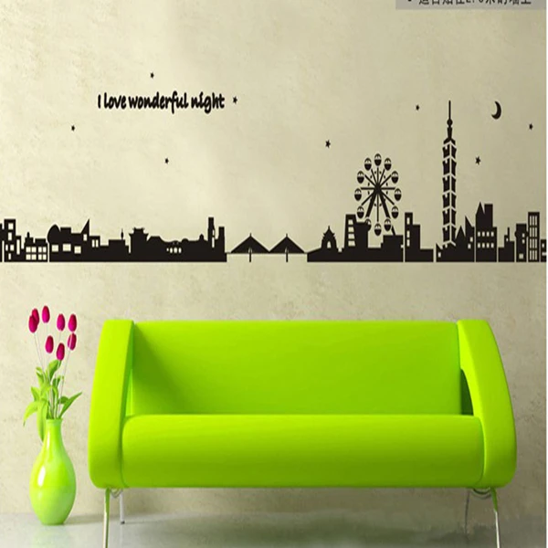 1pc High Quality 280*45cm Black 3D PVC City Silhouette Wall Stickers Living Room Sofa/TV Background