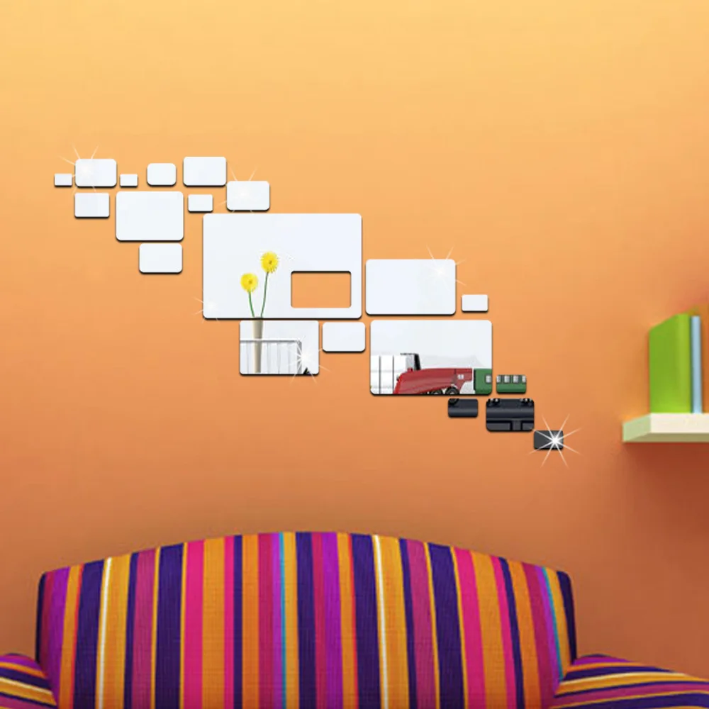 DIY Geometric Figure Mirror-like Wall Stickers Geometric Art Wall Decals for Kids Rooms Bedroom Liv