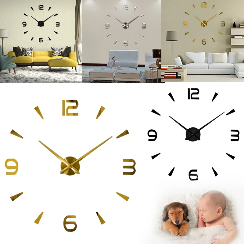 ORIGINAL Large 3D Mirror Surface Clock Wall Clock Sticker Home Office Room DIY Decor